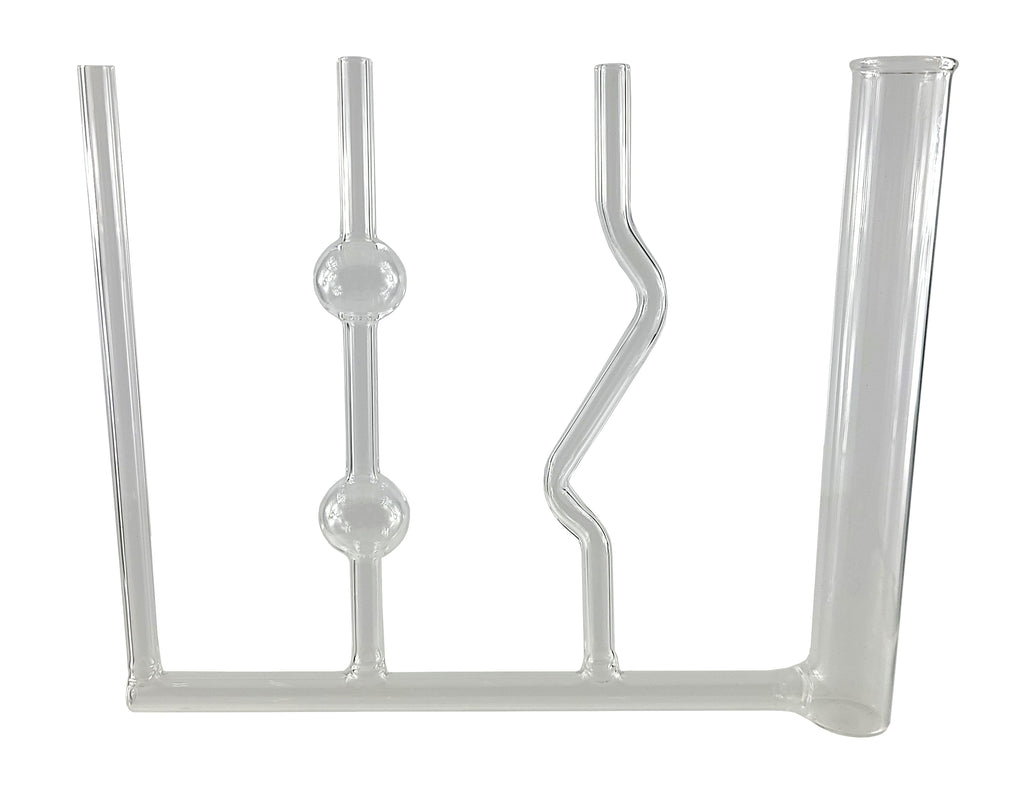 The standard equilibrium tube is a one-piece glass apparatus with various shaped arms extending from the manifold. It is used to demonstrate equilibrium, regardless of the shape of the tube, based on atmospheric pressure.