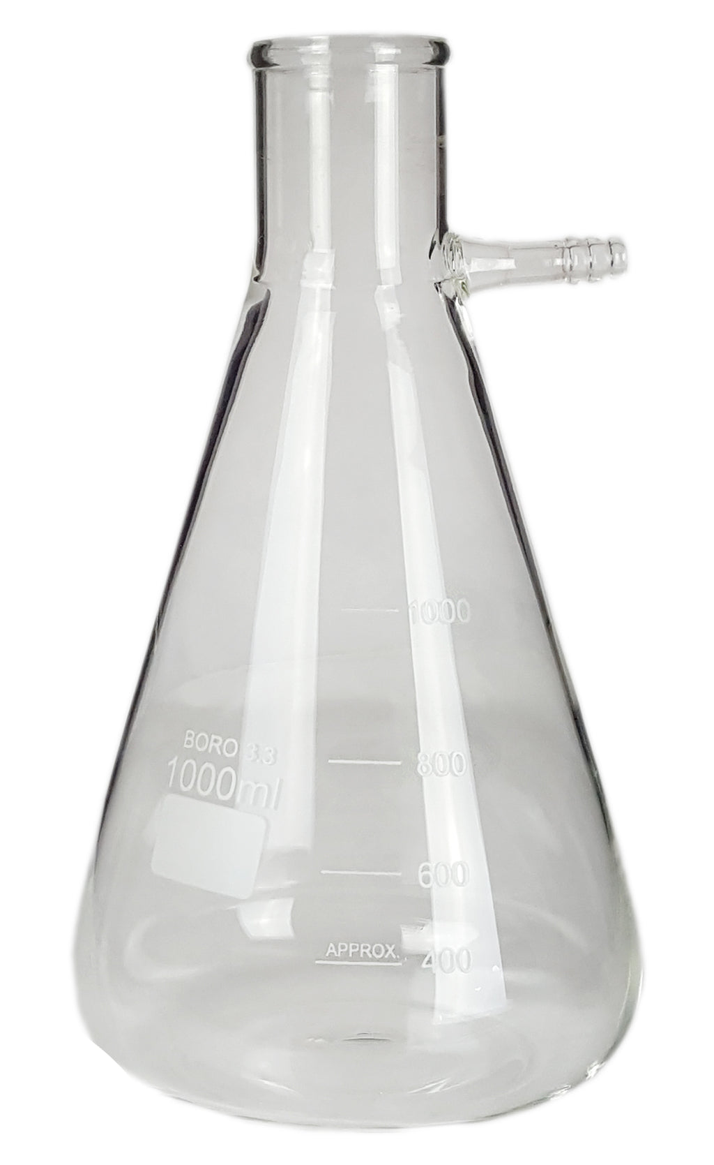 Our Filtering Flasks are made from quality borosilicate glass and have a narrow mouth, tooled-top finish, and a capacity scale. This model has a capacity of 1000ml.
