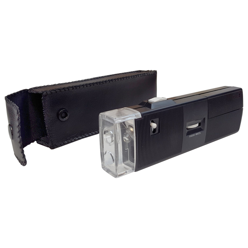 GSC International 1389 Microscope Portable Handheld – 30x Magnification Field Microscope with Light, Focusing Thumb Wheel, and Leather Carrying Case – Educational Science Tool