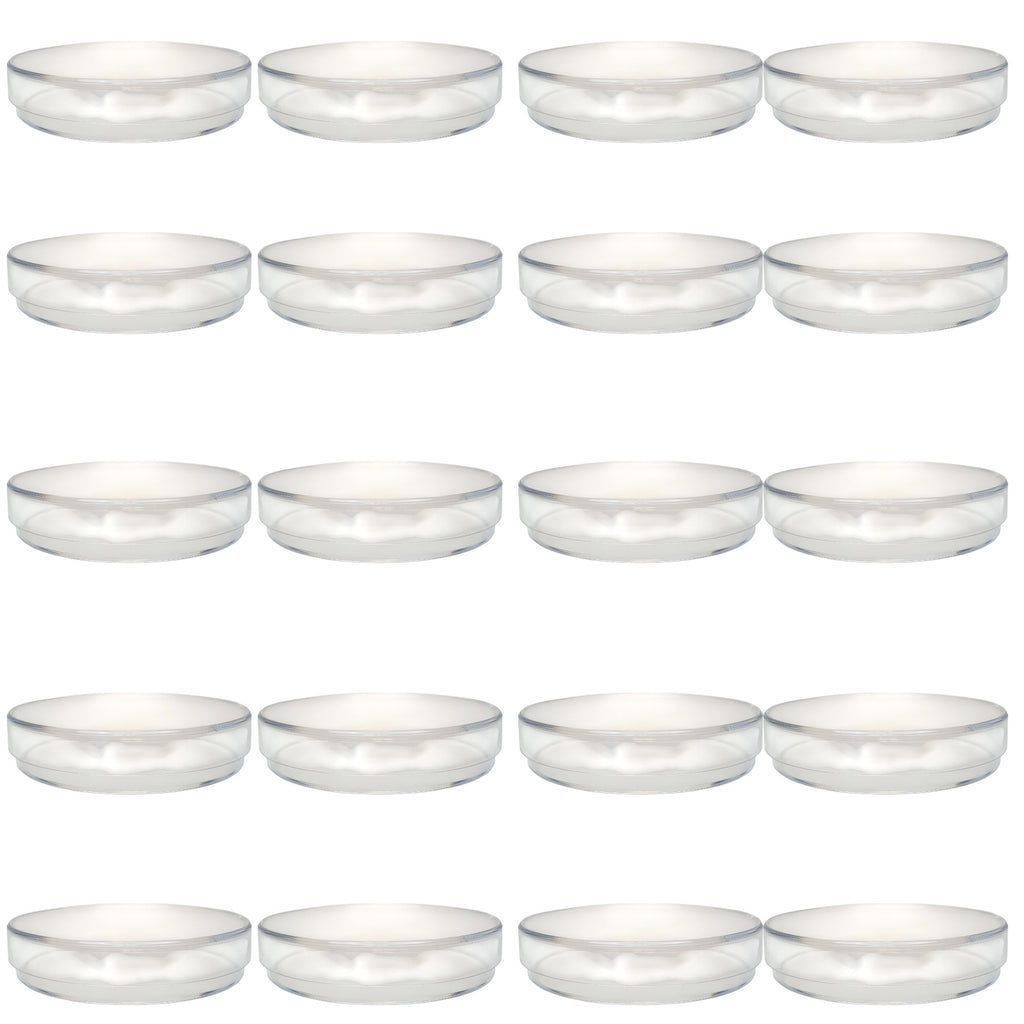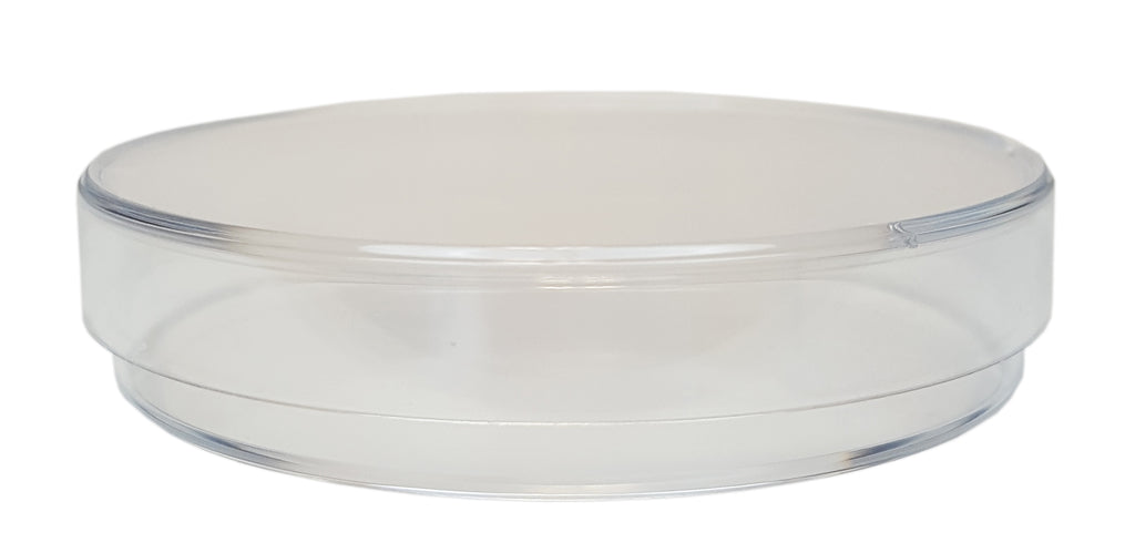This sterile polystyrene Petri dish is 70mm in diameter with a depth of 15mm. It has a lid and a bottom piece. Comes in a sealed pack of 20.