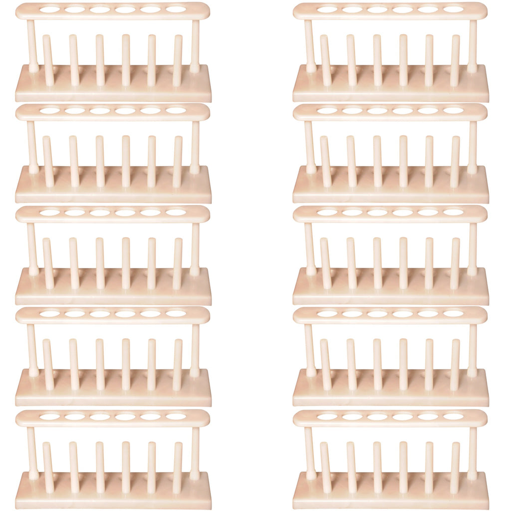 GSC International 2204-16MM-10 Test Tube Racks with Drying Pins – Holds Tubes up to 16mm – 6 Hole 6 Pin Polystyrene Racks – Pack of 10 Laboratory Tube Holders for Classroom and Research Use