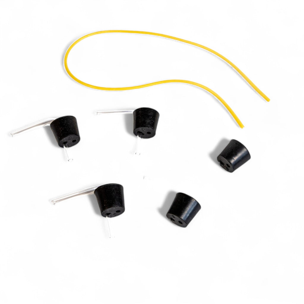 Complete connector kit with six #6 two-hole stoppers and 24 inches of latex tubing