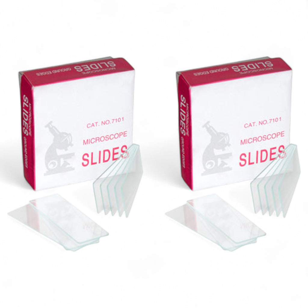 Pre-cleaned plain glass microscope slides designed for preparing and viewing specimens in labs or classrooms