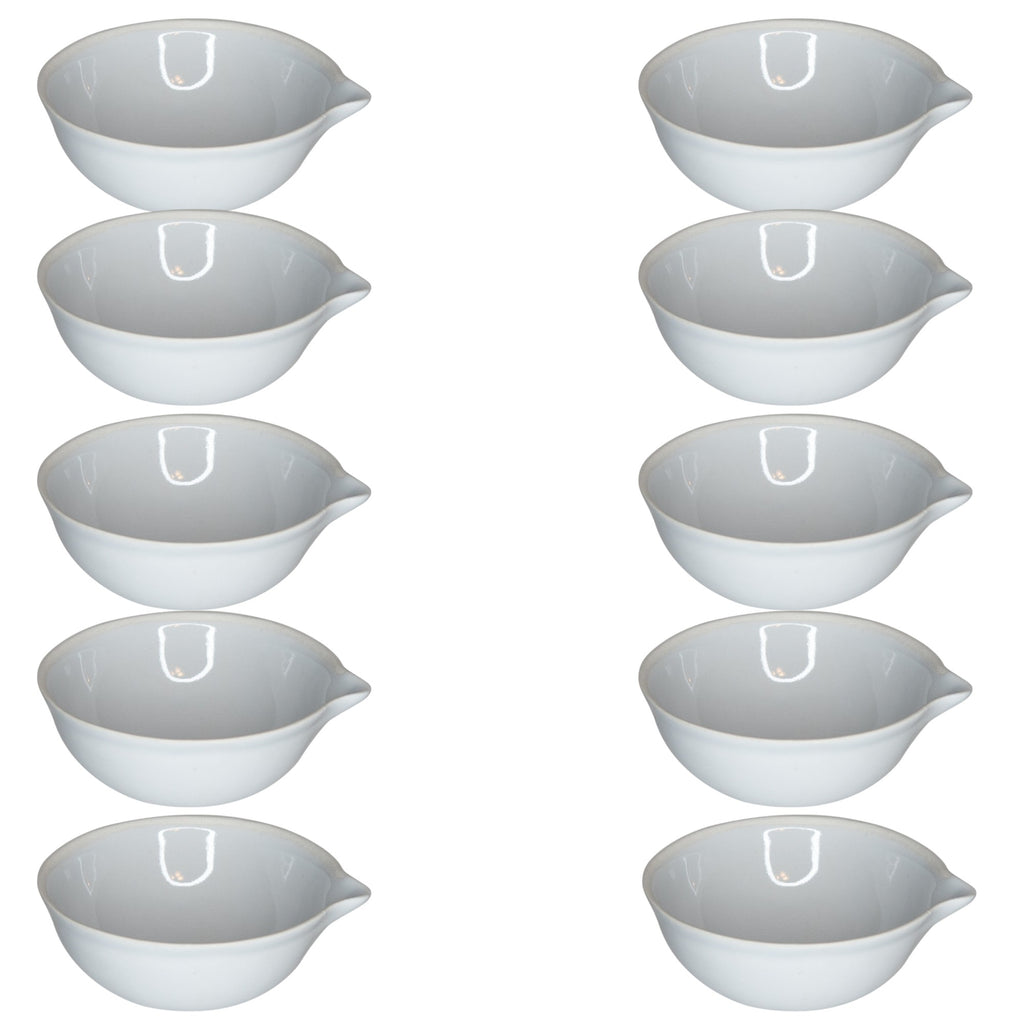 Use Evaporating Dishes in situations where you need to evaporate excess solvent from a mixture. Our evaporating dishes are uniform and dense. They have stable mechanical strength and little permeability. When properly used, the glazed pieces can withstand temperatures of 1050°C and the unglazed pieces 1350°C.