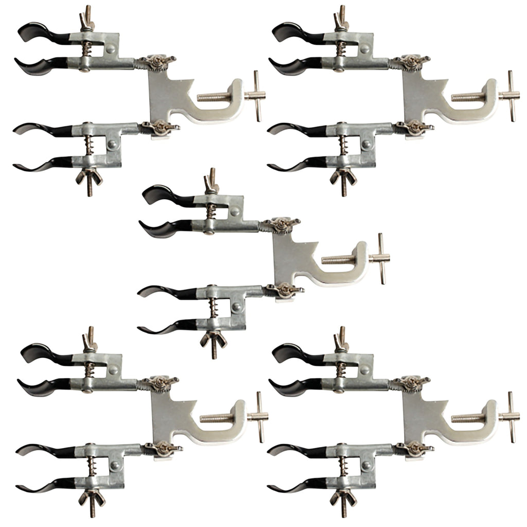 The double burette clamp, has adjustable arms that can be locked in the selected position. Cast-metal construction with plastisol tips. Pack 5 each.