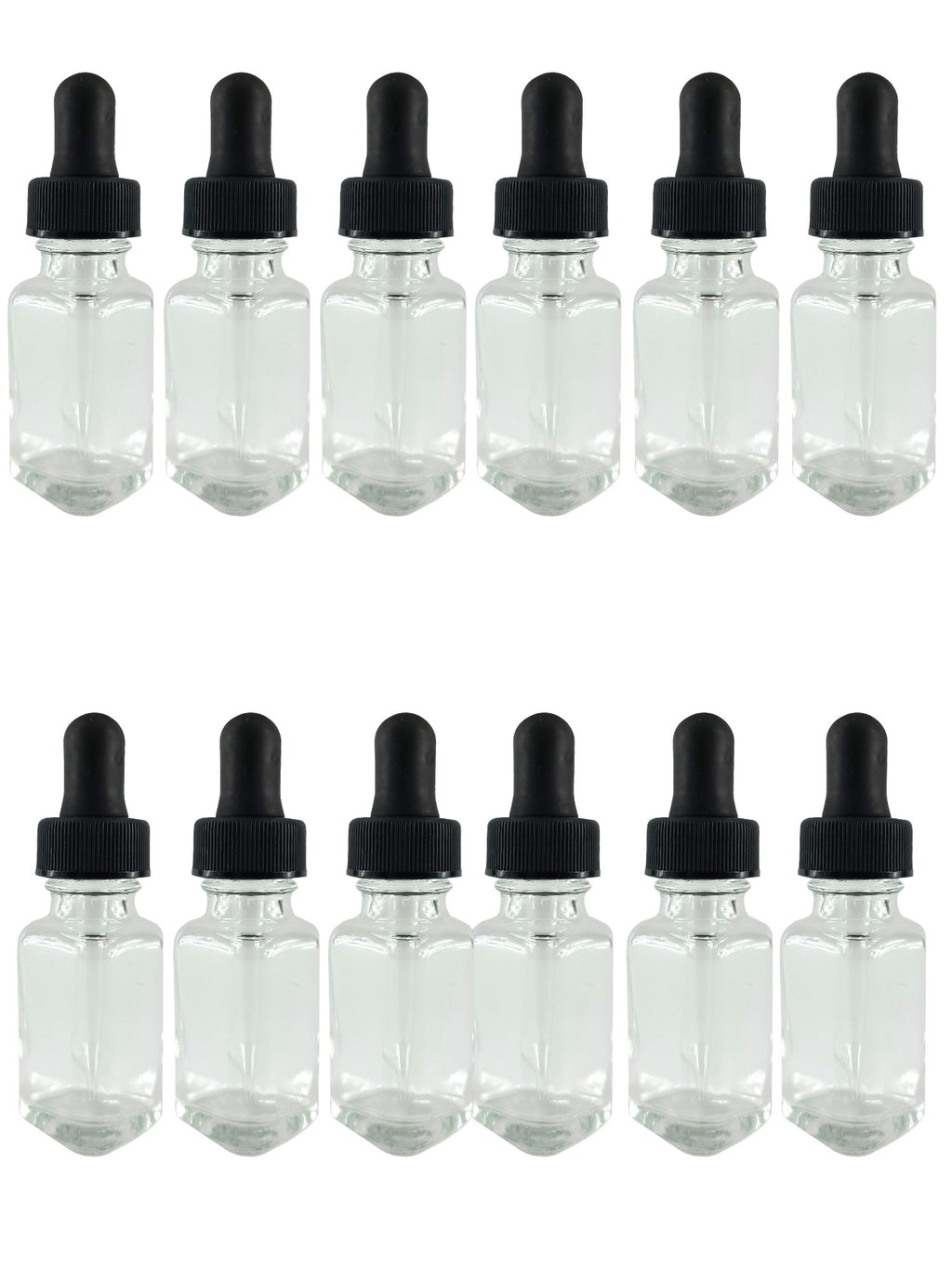 Dropping bottles allow for the accurate dispensing of reagents one drop at a time or in a stream. The one-ounce capacity bottles are made from flint glass. They are French square, and clear glass. The dropper assembly has a 24/400 cap. The glass pipette is 7mm outside diameter by 76mm length. Sold in a pack of 12.
