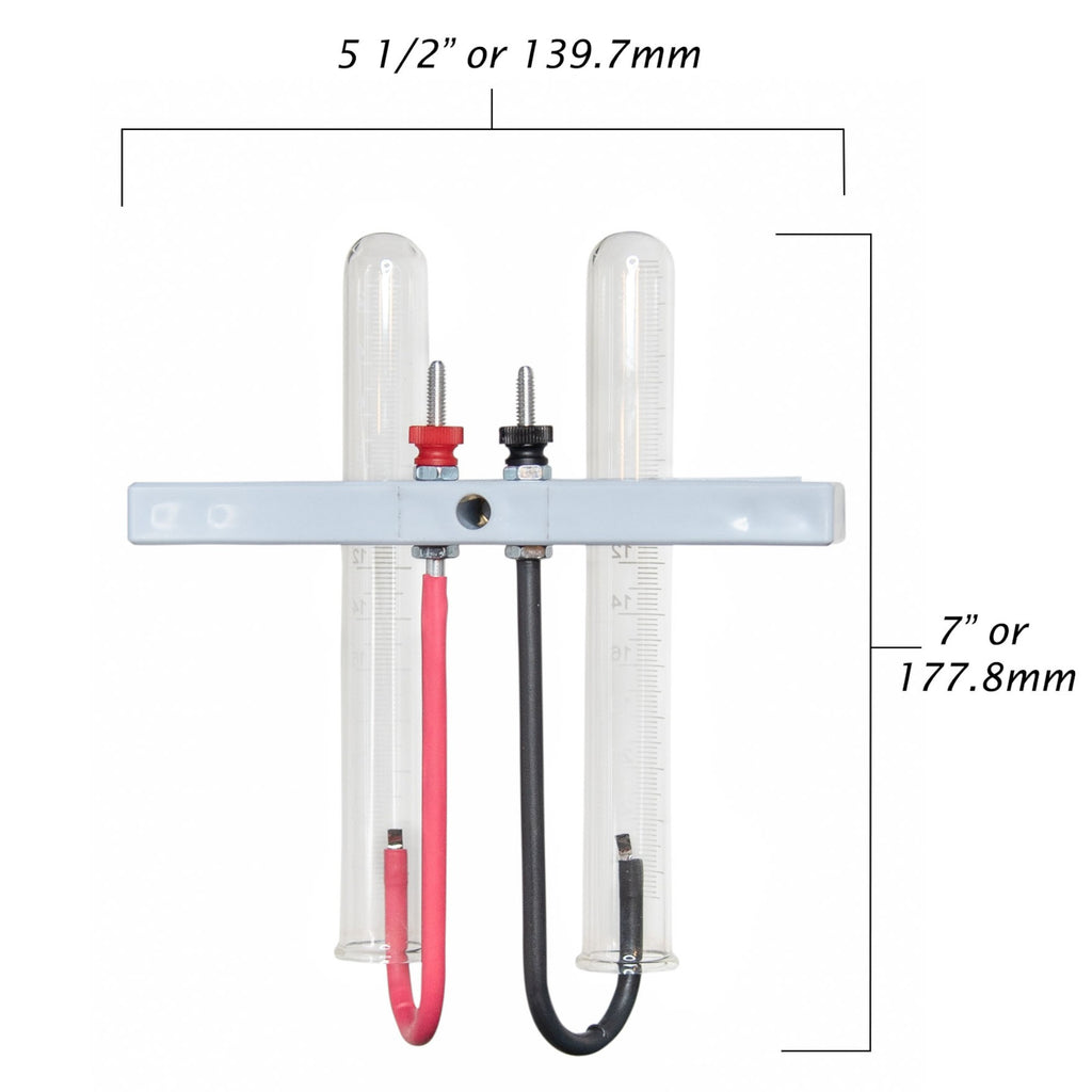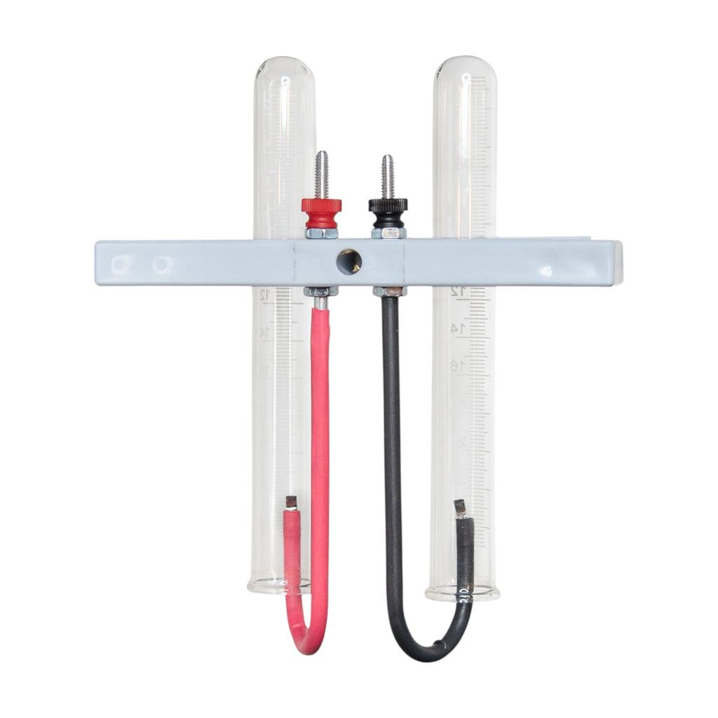 Classic Brownlee electrolysis apparatus with acid-resistant base and collection tubes (jar not included)