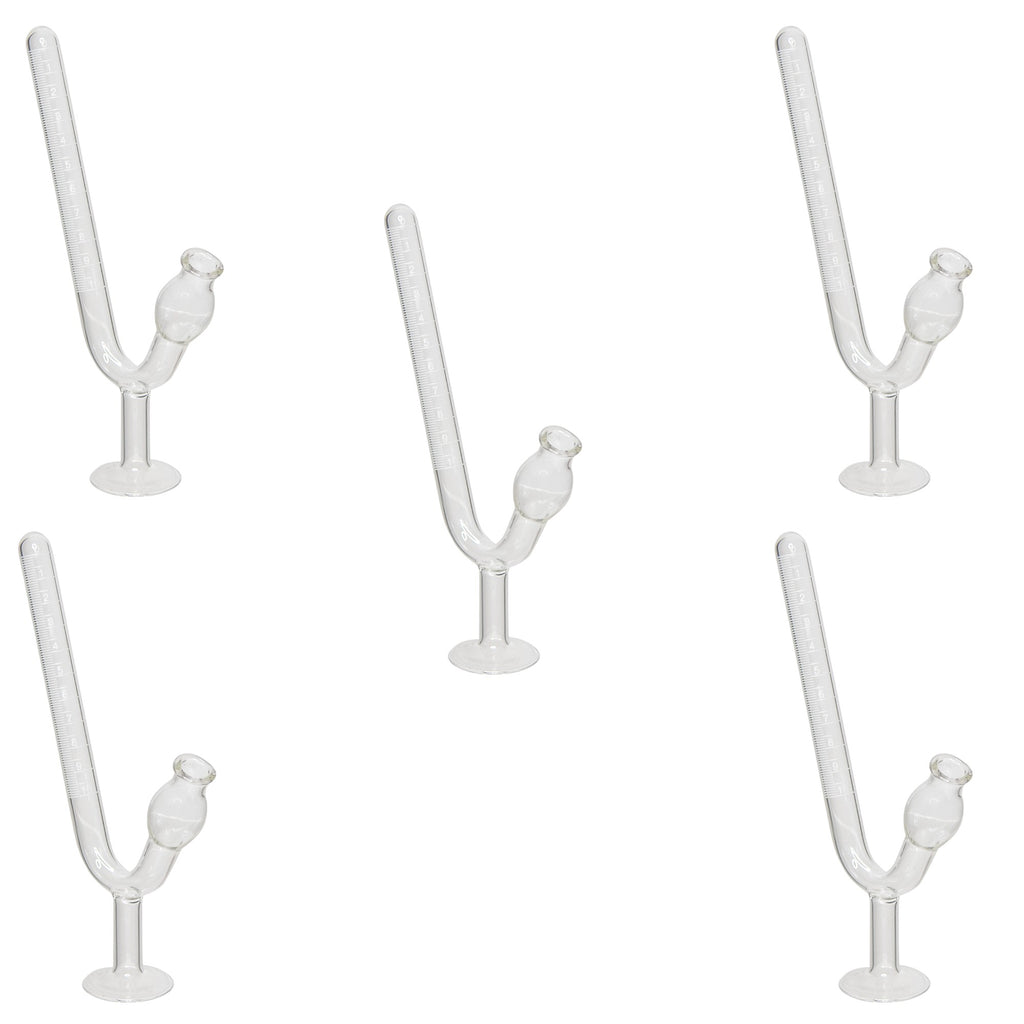 Fermentation Tube with Base Graduated to 10ml. Pack of 5.The fermentation tube is made from borosilicate glass and has white graduations with 0ml at the top of the collection tube and 10ml at the bottom. The collection tube is subdivided by 0.10ml. The open end has a bulb for the collection of the materials being fermented. The tube is supported by a round glass base. Sold as a pack of 5.