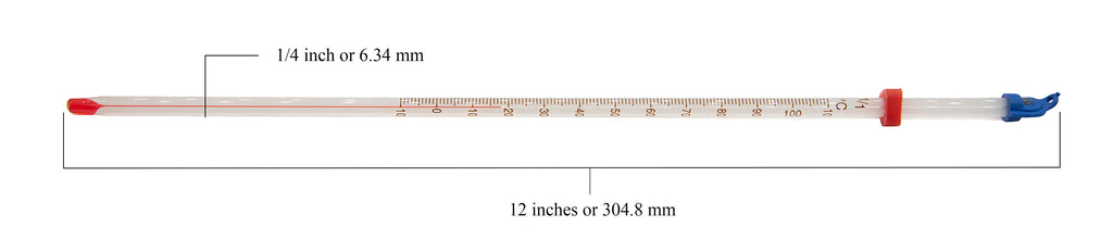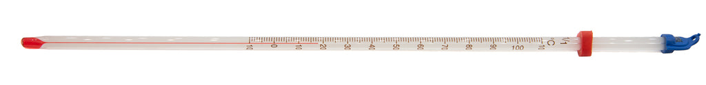 These are glass laboratory thermometer, filled with safe red alcohol. The thermometers are graduated -10 to 110 Celsius, with a white back and they partial immersion. The thermometers are pack one per plastic tube and are provided with a no-roll sleeve to keep it from rolling off a table top.