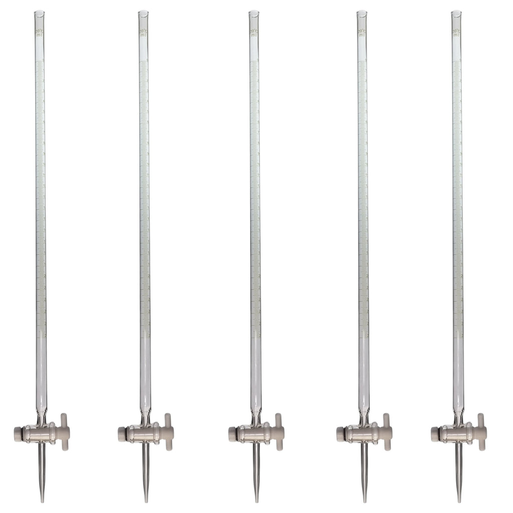 GSC International 9380-1-5 Burette 25 mL – Pack of 5 Class A Borosilicate Glass Burettes with Ground Glass Stopcock and 0.1 mL Graduations for Chemistry Labs