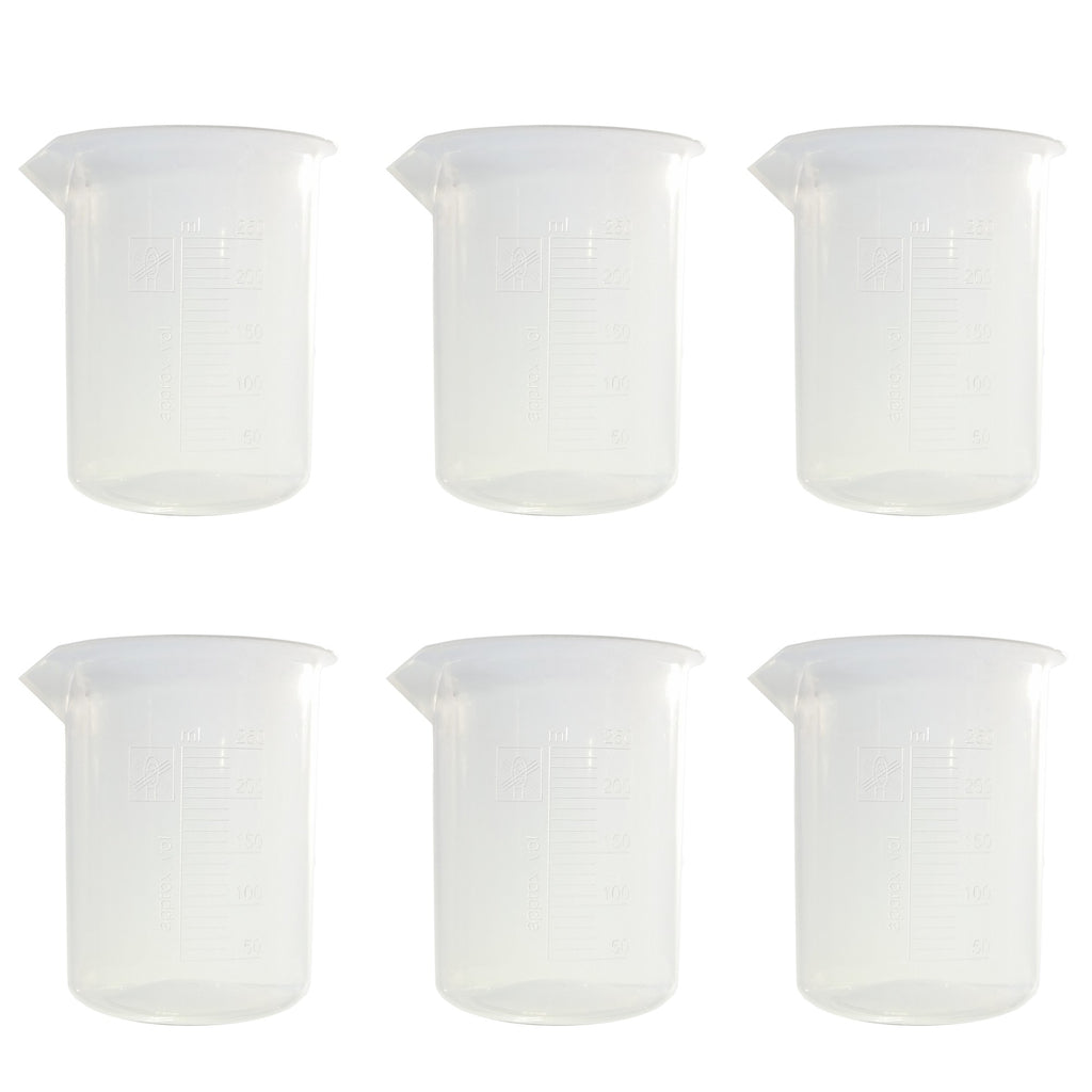 Set of 6 polypropylene beakers, each with 250ml capacity