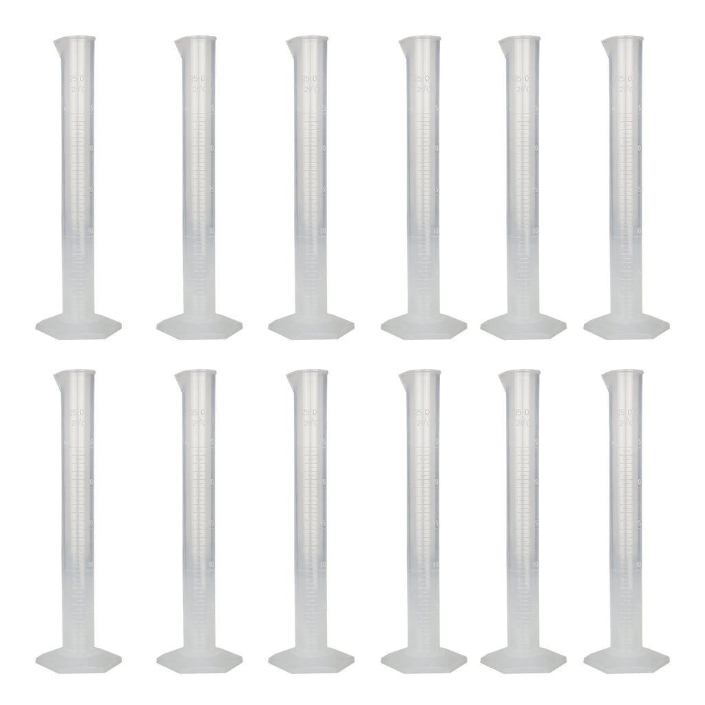 These cylinders are molded from tough, translucent polypropylene plastic, and have raised graduations and a hex base for stability. They are autoclavable up to 120°C. These cylinders have a capacity of 25ml. Sold in a pack of 12.