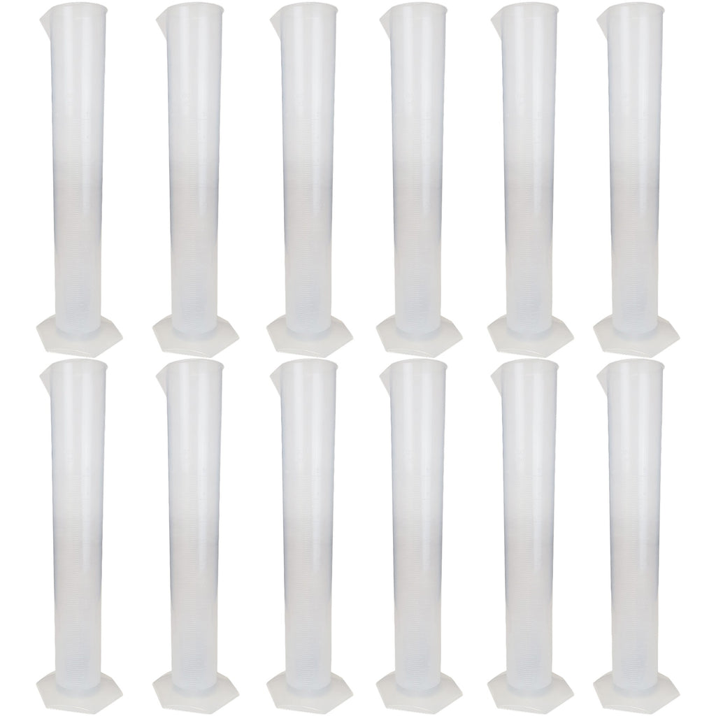 These cylinders are molded from tough, translucent polypropylene plastic, and have raised graduations and a hex base for stability. They are autoclavable up to 120°C. These cylinders have a capacity of 500ml. Sold in a pack of 12.