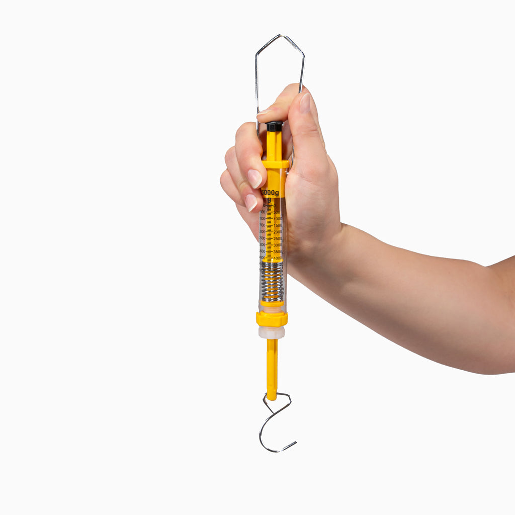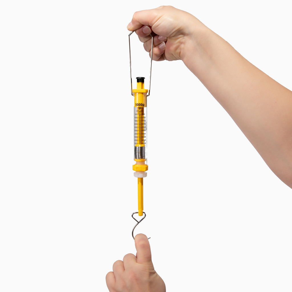 Our dual-function dynamometers with steel hooks are made of durable plastic. With the push-rod at the top and the hook on the bottom, you can measure both push and pull forces. The hook also allows you to weigh small objects. Measurements are given in both grams and Newtons. This dynamometer can measure up to 5000g or 50N.