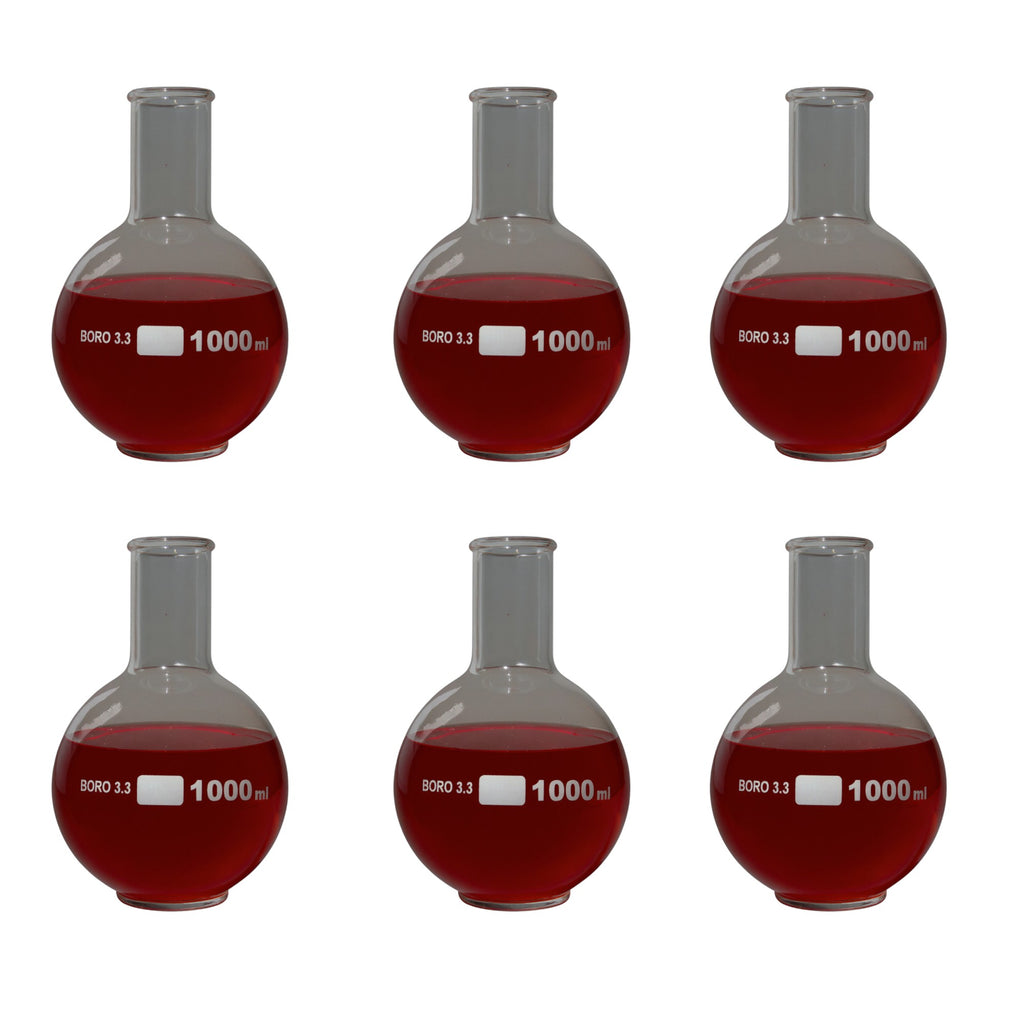 GSC International FFB1000-PK 1000ml Florence Boiling Flask Set – Round-Bottom, Standard Neck, Borosilicate Glass – Pack of 6 Autoclavable Lab Flasks for Chemistry, Classroom, or Homeschool