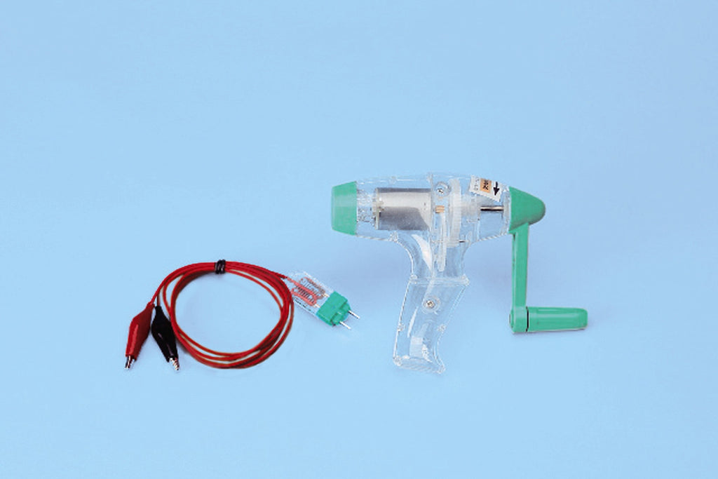 The versatile generator can be used as a generator, motor, or power supply. You can also use multiple Genecon Generators simultaneously, in series or in parallel, to power equipment. The upper limit of generated voltage is set at 3 volts to prevent unexpected breakage of accessory like a miniature incandescent bulb. Several kinds of dedicated adapters (miniature incandescent bulb, LED bulb) are available and will plug directly into the Genecon V3.
