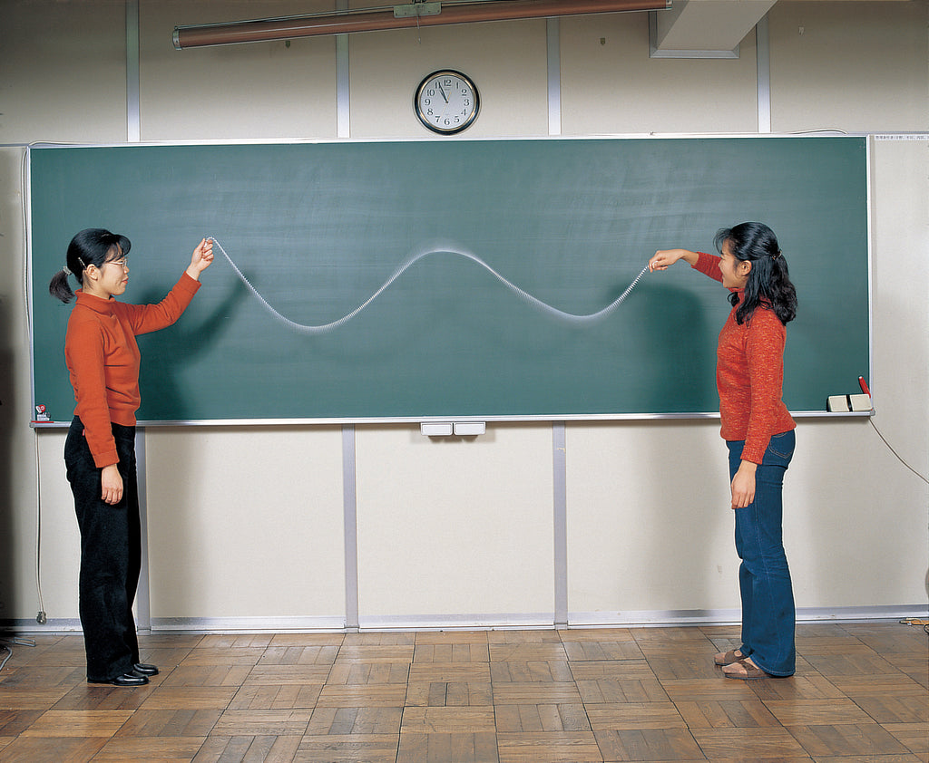 With this simple spring generator equipment, it is easy to demonstrate transversal and longitudinal waves to your students in the classroom. The light material allows you to model the waves in the air or on the floor, without tangling the spring.