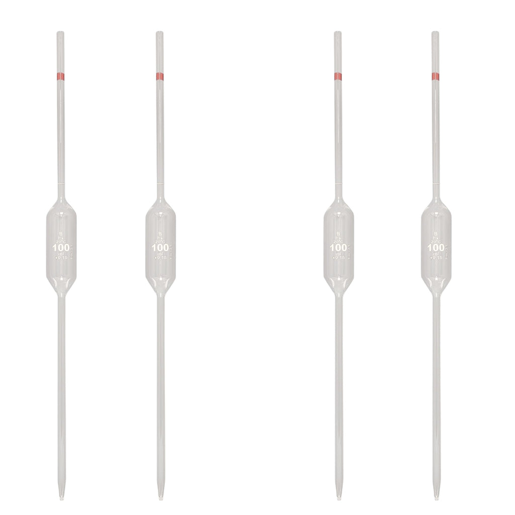 Volumetric pipettes allow for an extremely accurate measurement of a solution. This class B borosilicate glass Volumetric Pipette has a 100ml capacity, a color-coded band, and an amber marking designating the capacity.