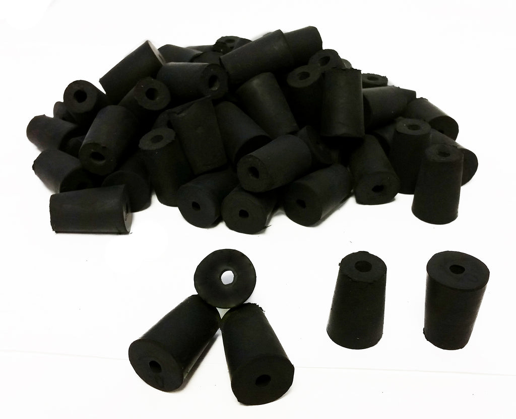 -Our high-quality rubber stoppers are soft, non-greasy and have a durometer of 45. They are sold in a case of ten one-pound packs. These stoppers are size 0 and are drilled with one hole. Size 0 stoppers have top diameter of 17mm, a height of 25mm, and a bottom diameter of 13mm. Approximately 80 size 0 stoppers are included per one-pound pack.Our high-quality rubber stoppers are soft, non-greasy and have a durometer of 45. They are sold in a case of ten one-pound packs.