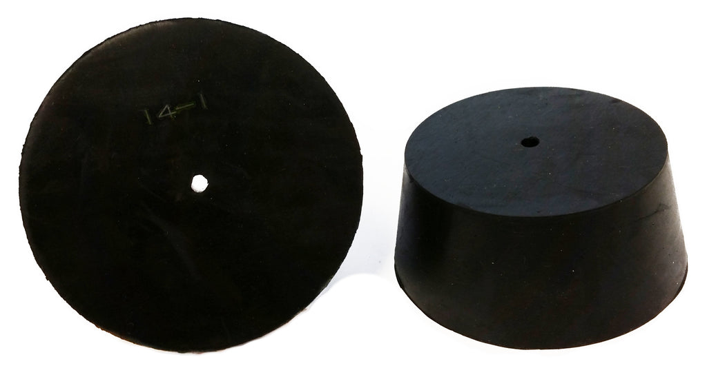 These stoppers are size 14 and are drilled with one hole. Size 14 stoppers have top diameter of 90mm, a height of 39mm, and a bottom diameter of 75mm. Approximately 2 size 14 stoppers are included per one-pound pack.