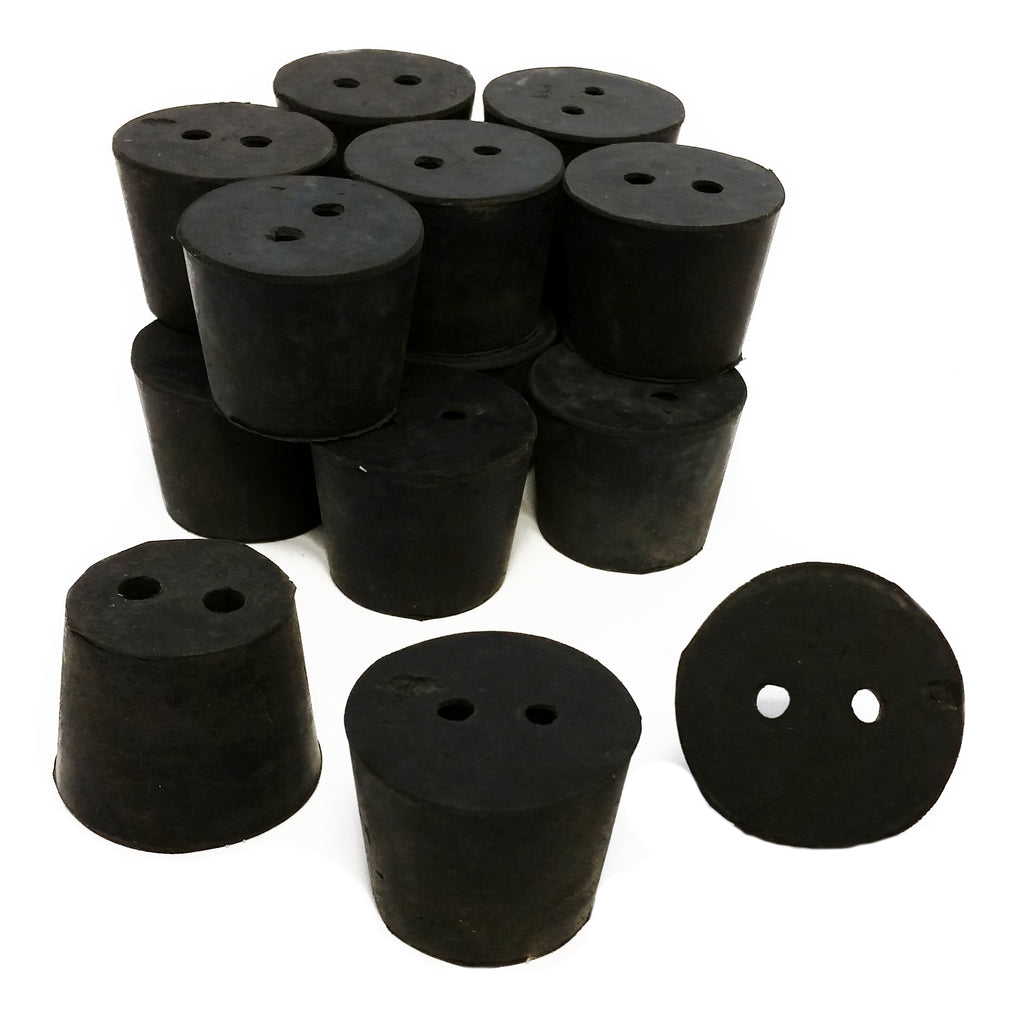 These stoppers are size 6 and are drilled with two holes. Size 6 stoppers have top diameter of 32mm, a height of 25mm, and a bottom diameter of 26mm. Approximately 23 size 6 stoppers are included per one-pound pack.