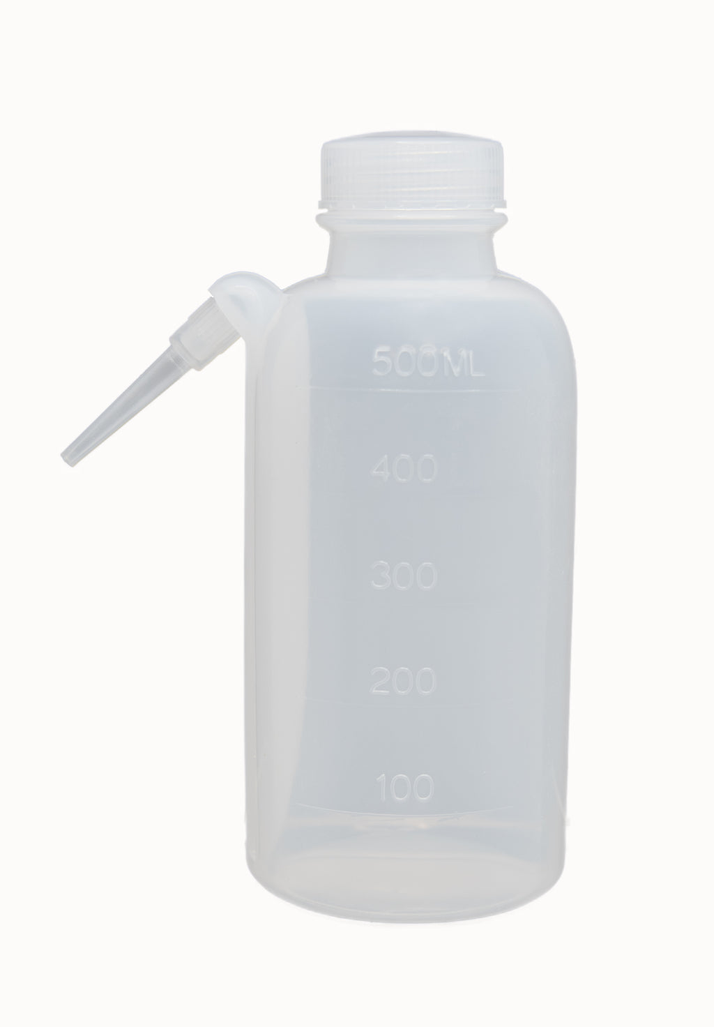 This wash bottle can hold up to 500ml of solution, made from low-density polyethylene. The nozzle and its straw are built into the bottle rendering it leak-proof. The top of the bottle has a threaded cap. Sold as a case of 250.