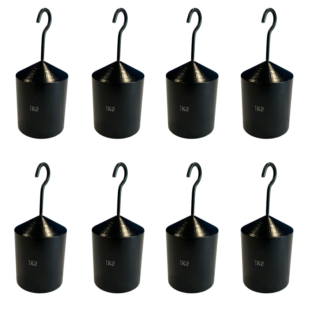 4-25011-CI-8 Hooked Mass 1000 grams. Case of 8. Used in PEER Physics EFG Kit.