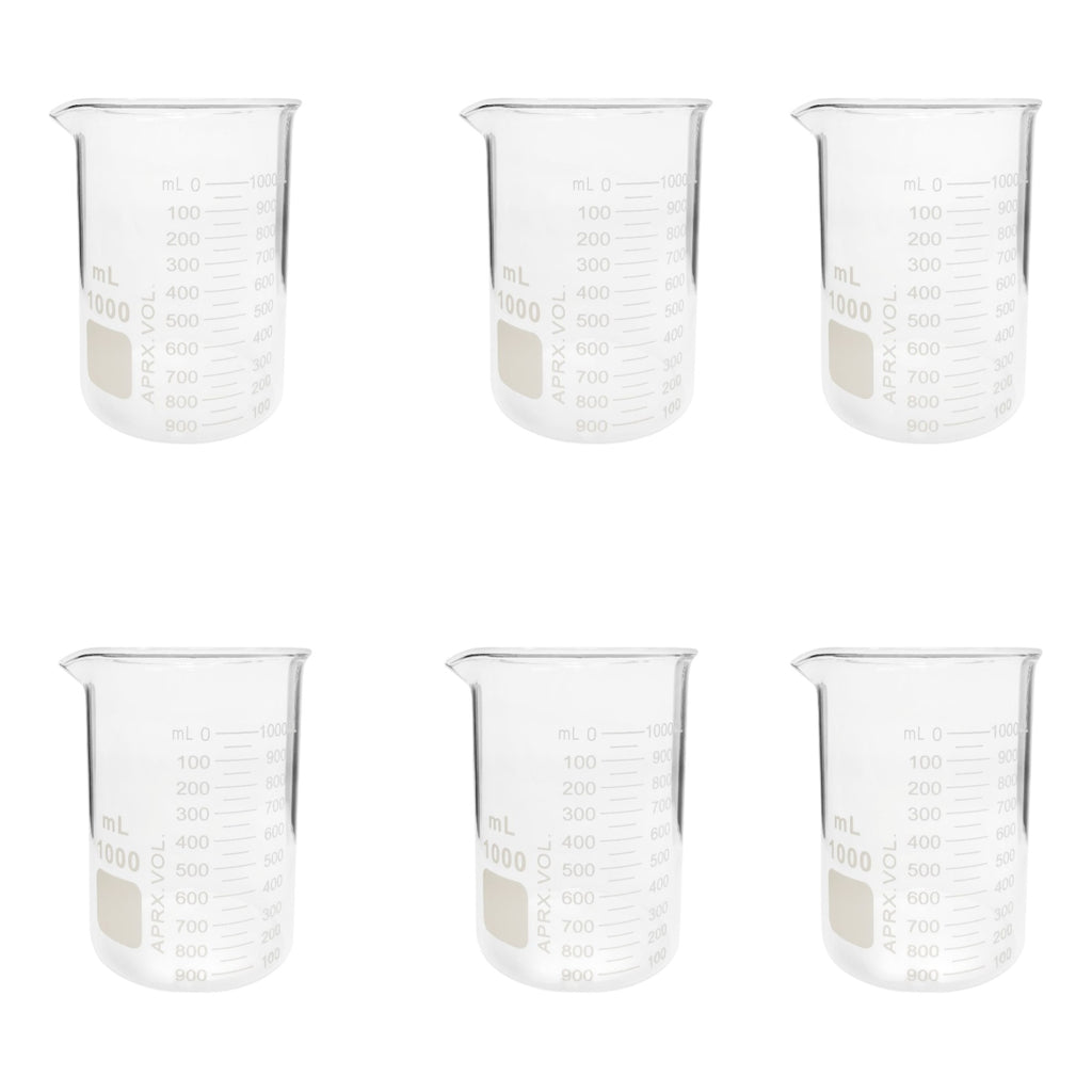 Lab Beaker Starter Kit - 6 -1000ml Griffin Style Beakers, Beaker Brush (330mm), Safety Glasses, Beaker Tongs with Plastisol-Coated Jaws – Essential Labware Bundle