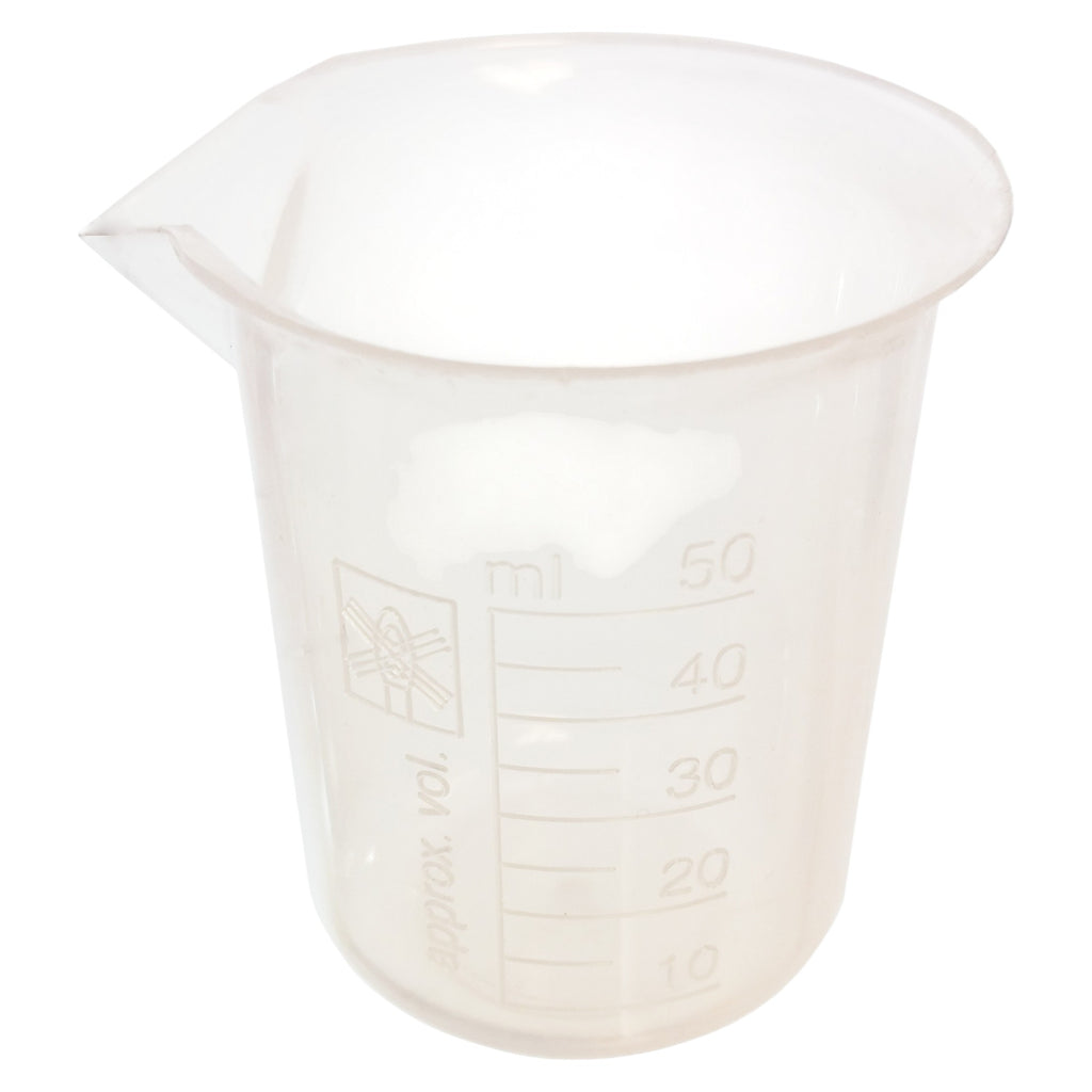 GSC International BKPP-50-EA Polypropylene Beaker – 50ml Graduated Plastic Beaker with Raised Markings and Tapered Spout – Durable, Autoclavable, and Educational