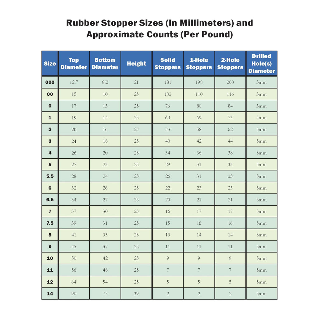 Soft non-greasy rubber stoppers with a durometer of 45 designed for lab and classroom applications