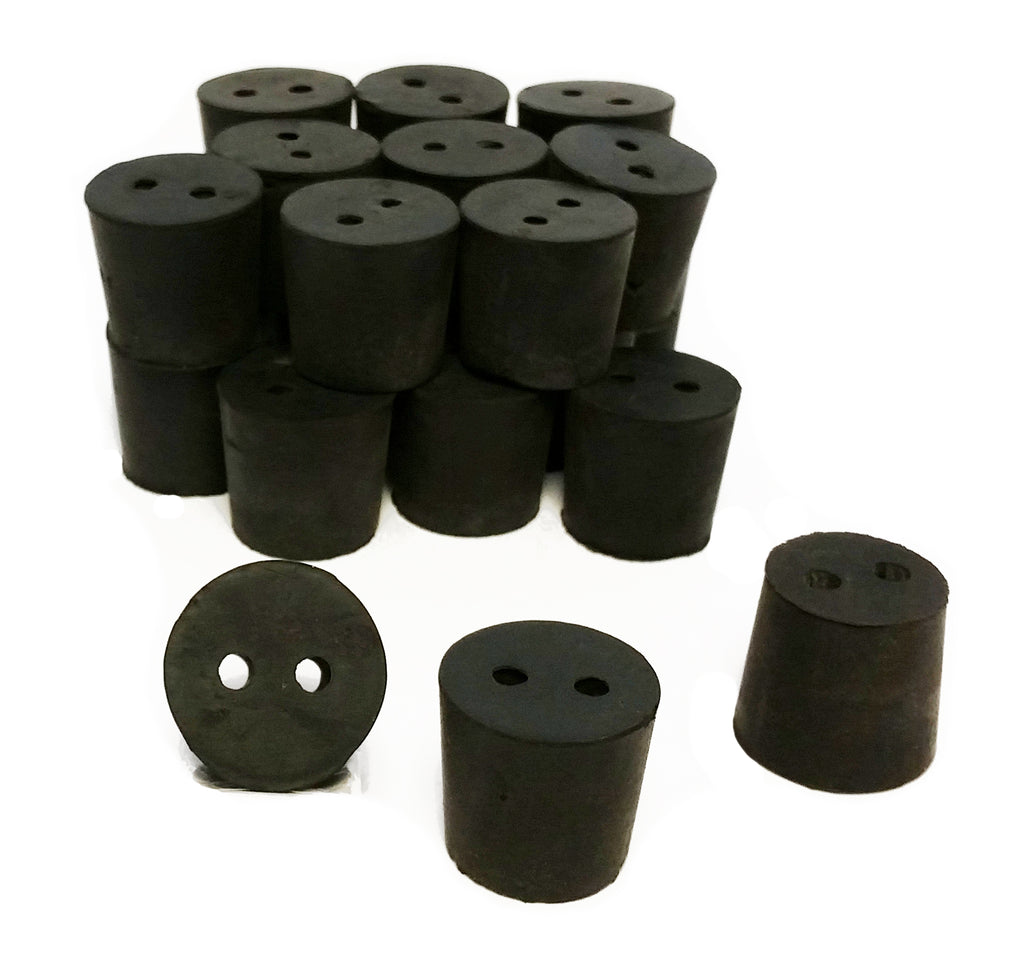 These stoppers are size 5 and are drilled with two holes. Size 5 stoppers have top diameter of 27mm, a height of 25mm, and a bottom diameter of 23mm. Approximately 33 size 5 stoppers are included per one-pound pack.