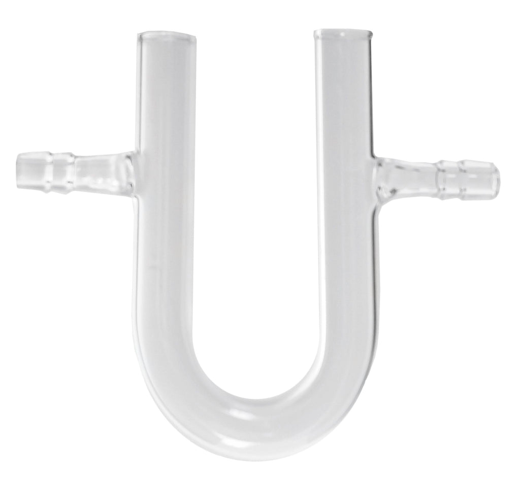 This U-shaped Drying Tube with side arms is designed for laboratory use in chemistry experiments involving moisture-sensitive reactions. It is typically filled with a desiccant like calcium chloride or silica gel to trap moisture from gases entering reaction vessels. The tube’s two open ends accept corks or rubber stoppers, while the side arms allow for easy hose connections to other glassware setups. Made from high-quality laboratory glass, the drying tube ensures chemical compatibility and clear visibility of contents, making it an essential tool for controlled experimental conditions.